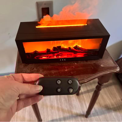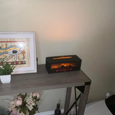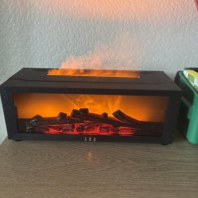 It doesn't disappoint. It looks like a little fake fireplace, complete with "smoke" (mist). This is a fun little gadget. I think it's really cute for an apartment or a dorm room.
