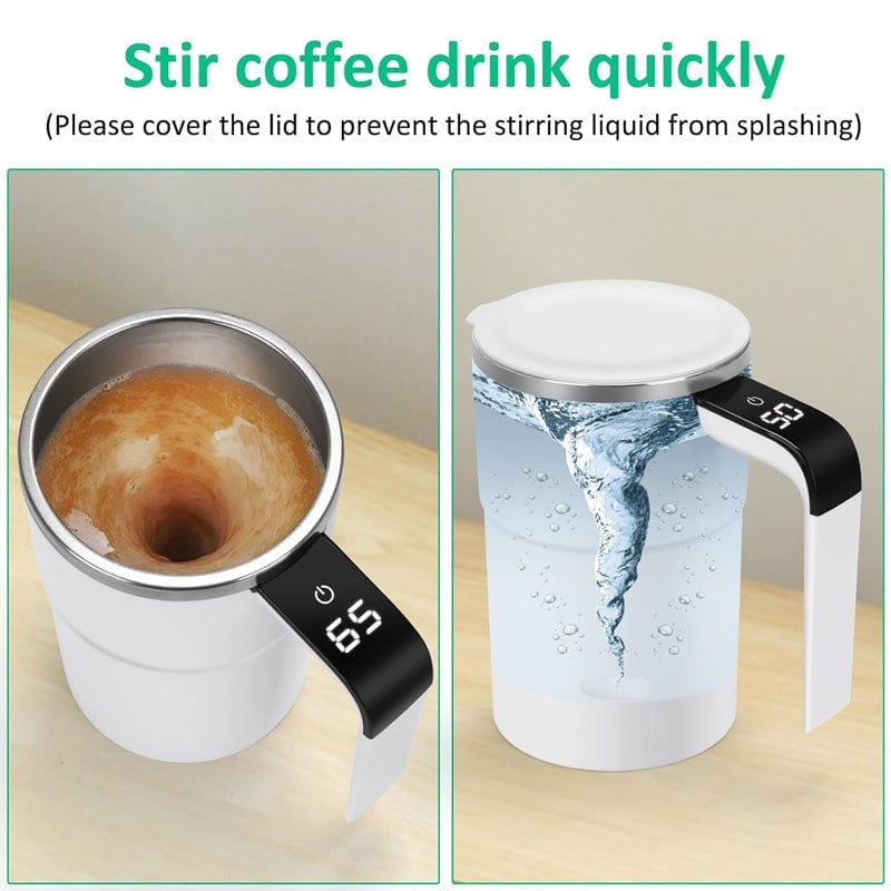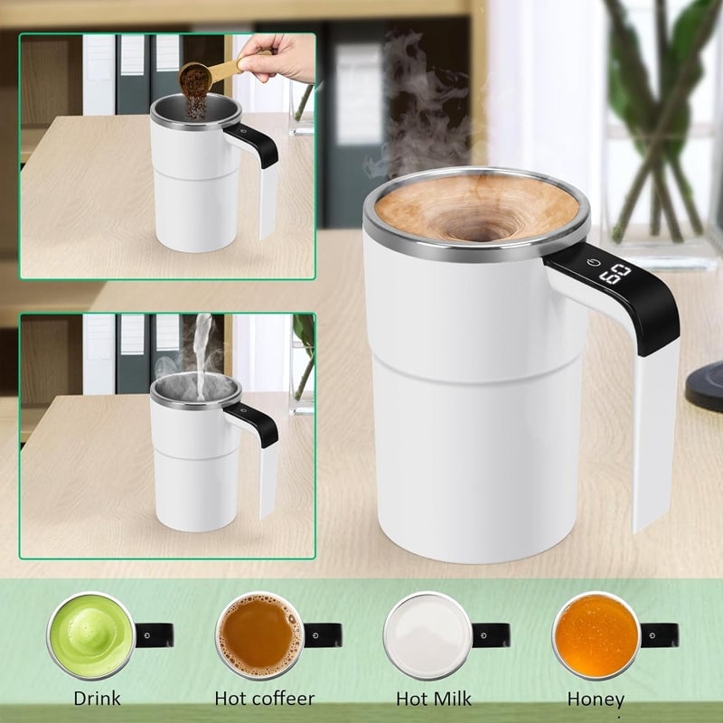 Stir Mixture Automatic Greatly: Our 13.5 Oz automatic mixing cup will perfectly stir and mix your hot cocoa with no residual powder. You can easily mix your honey into tea, stir sugar and cream in coffee, make amazing chocolate and strawberry milk, mix protein powder drinks well, etc.